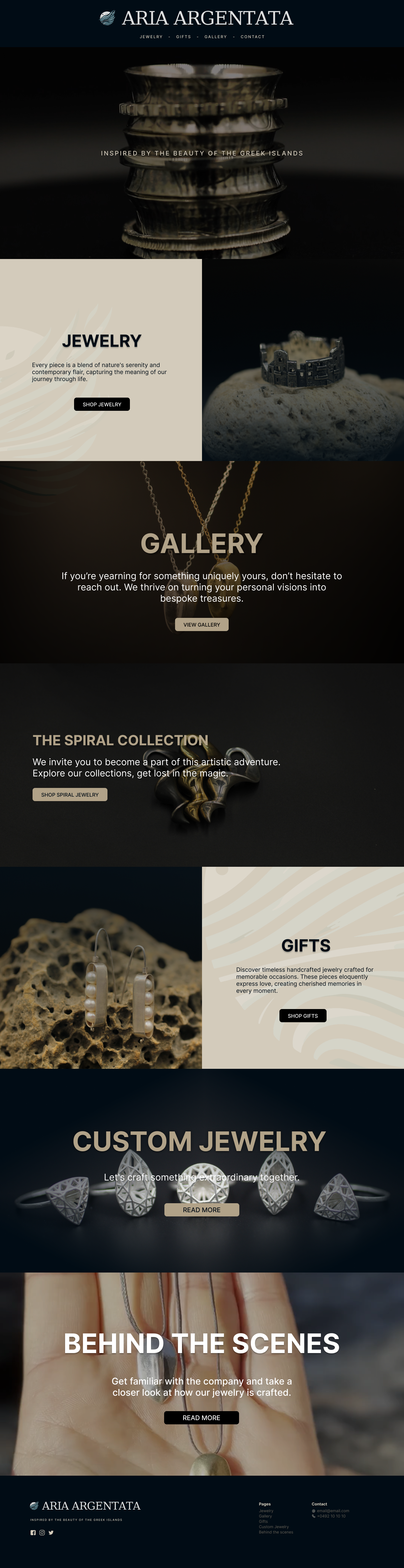 Aria Argentata is a luxury jewelry concept website created as a group project. I focused on UX design, mid- and high-fidelity prototyping, and applying user research throughout the process.